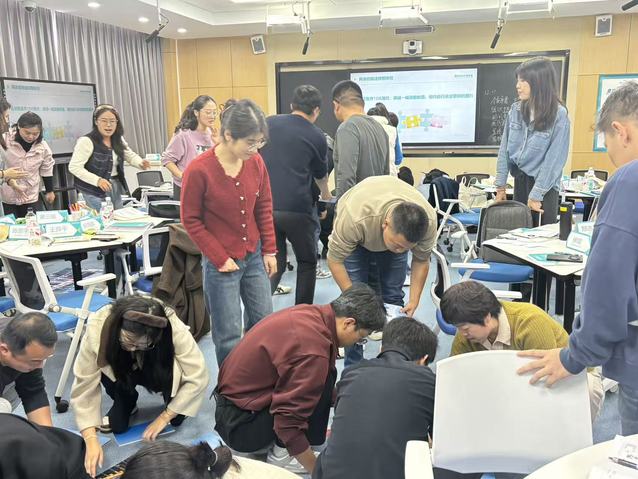 培训围绕“就业育人”主题班会的设计与实施展开,通过体验式、翻转式教学模式,系统介绍了破冰技巧、库伯学习圈、生涯剧本杀、生涯拼图等多种互动教学工具与方法。参训教师在培训师的引导下,深入体验了如何通过团体辅导唤醒学生生涯意识、提升适应力、明确职业方向,并在模拟实践中掌握了班会组织的全流程操作。