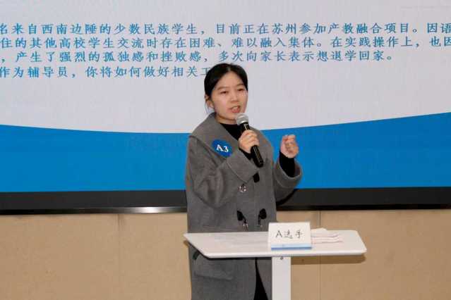 案例研讨环节以“互问互答+评委提问”的方式进行,选手围绕抽取的学生工作典型案例,从问题本质、解决思路、实施步骤、育人成效等方面展开阐述与应答。该环节不仅要求选手具备快速分析、研判问题的能力,更强调解决方案的实效性与创新性,全面展现了辅导员在面对突发状况与复杂问题时的专业素养与应变能力。