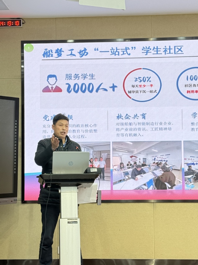 针对下一阶段任务,他强调,将以“五个化”为核心抓手,推进“一站式”学生社区建设从“有”到“优”提质、从“优”到“精”增效。一是系统化布局,深度研讨、科学制定实施方案,筑牢社区建设“四梁八柱”;二是精细化服务,紧扣学生急难愁盼精准施策,整合多元资源切实提升学生获得感与满意度;三是清单化管理,以月度工作清单明确任务、节点与责任主体,推动各项举措闭环落地,确保建设成效可量化、可检验;四是智能化升级,依托专业优势补齐短板,实现管理服务向数字化、高效化转型;五是品牌化打造,深挖海事文化与专业特色内涵,培育差异化精品项目,以品牌引领带动社区建设整体提质,彰显育人实效。